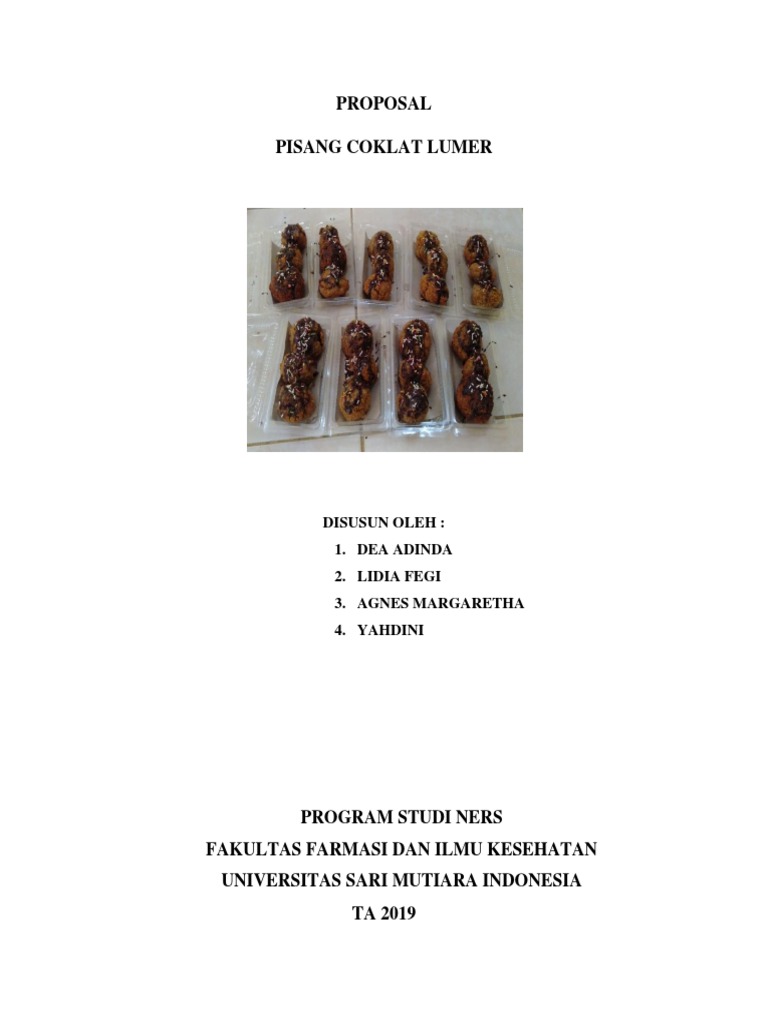 Proposal Usaha Pisang Coklat Siska Nopitasari from imgv2-1-f.scribdassets.com 1.4 visi dan misi 1. Oleh karena itu, saya berusaha mengatur semua. Untuk mendapatkan dokumen lengkap contoh proposal usaha makanan. Visi usaha menjadikan kripik pisang coklat sebagai makanan tradisional khas indonesia 2. Alasan saya menawarkan produk ini adalah karena saat ini semakin banyak masyarakat yang beralih ke makanan cepat saji. Dari contoh perhitungan yang ada di atas, dengan menggunakan asumsi anda menggunakan sejumalah uang yang besarnya rp 1.380.000 yang dialokasikan untuk investasi usaha lumpia pisang coklat karamel, dan untuk alokasi biaya tetap rp 90.639, biaya variable rp 277.000. Biaya peralatan penunjang no nama barang justifikasi paemakaian kuantitas harga satuan (rp.) total harga 1. Kebutuhan msyarakat akan konsumsi yang semakin meningkat.