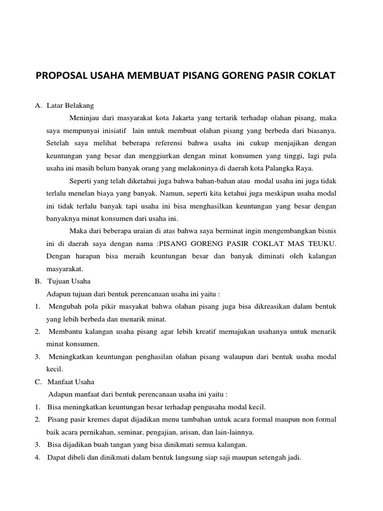 2 contoh proposal usaha makanan pisang coklat proposal usaha makanan. Keuntungan usaha = rp 1.380.000: